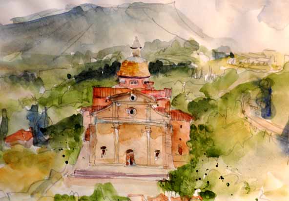 Below the city walls (those aforementioned Etruscan walls) are a pair of churches. Below is S. Maria Nuova -- the NEW St Mary's -- built in the 1500s. |