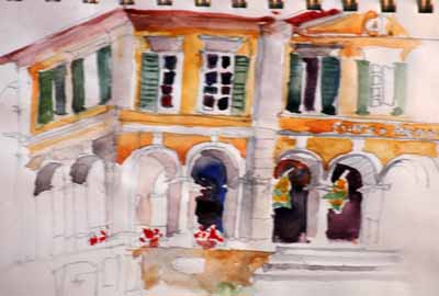 What else should or would be playing at the only theater in town but "The DaVinci Code." A British couple at the hotel are going to check it out, even though they don't speak Italian. Could be interesting. |