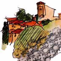 Another highlight of my hotel room is that there's a view to paint from dawn to gaudy sunsets. In fact, there seems to be a paintable view pretty much everywhere. Day trips to Montepulciano and Pienza and Perugia and Arezzo provide new scenes, but Cortona, despite it's overexposure (there's now a "Tuscan Sun" festival) and Universities of Georgia and Alberta programs, keeps pleasing me and is a pretty good base. |
